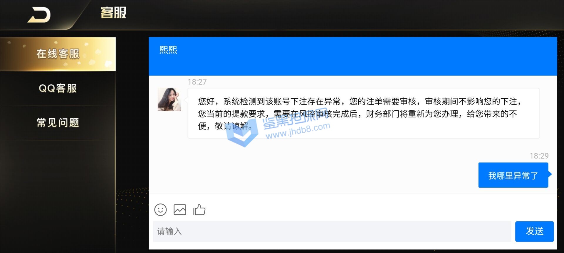 4.用户提交维权需为本人提交,若代替让人发布维权鉴黑担保网将拒绝受理;